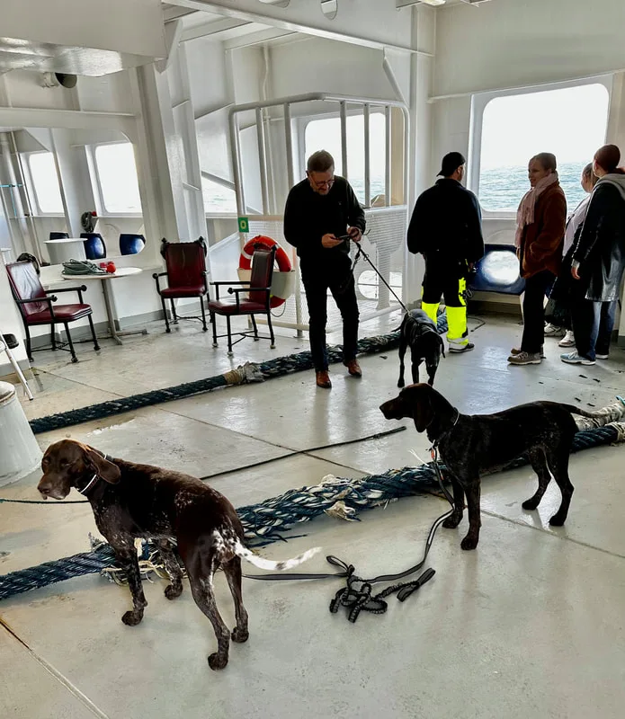 Å reise med Color Line fra Oslo til Kiel var en litt blandet opplevelse. På Color Magic var det er lite akterdekk der vi kunne lufte hundene, noe som manglet på Color Fantasy. Konklusjonen er at sistnevnte ikke egner seg for hunder. Neste gang vi skal sørover blir det nok en annen løsning, enten ved å kjøre en større del av turen eller å ta kortere fergeturer. Vi har tatt fergen fra Larvik til Hirtshals et par ganger tidligere og det er akkurat passe, både for hunder og folk. Frokostbuffeten anbefales...