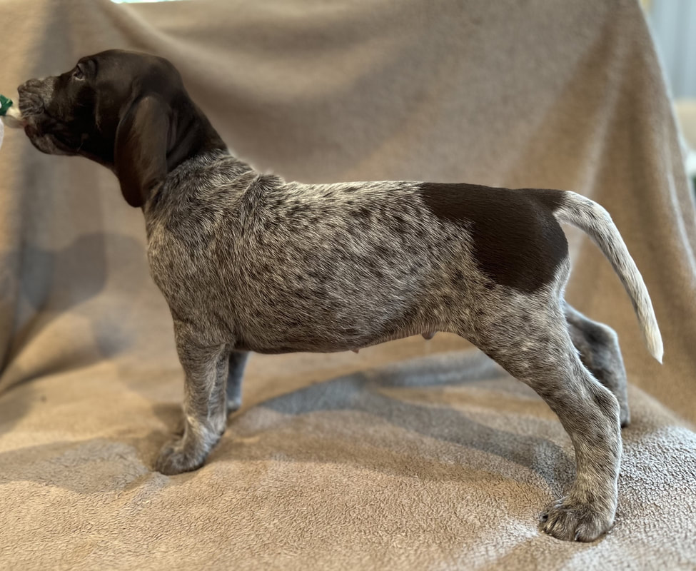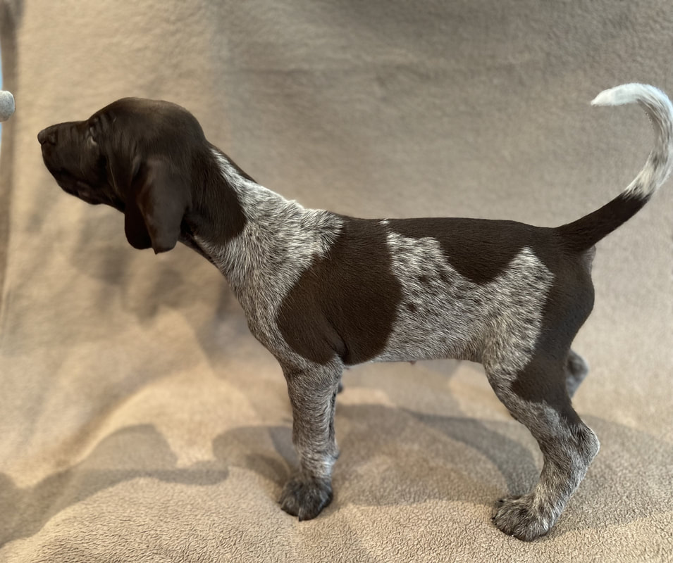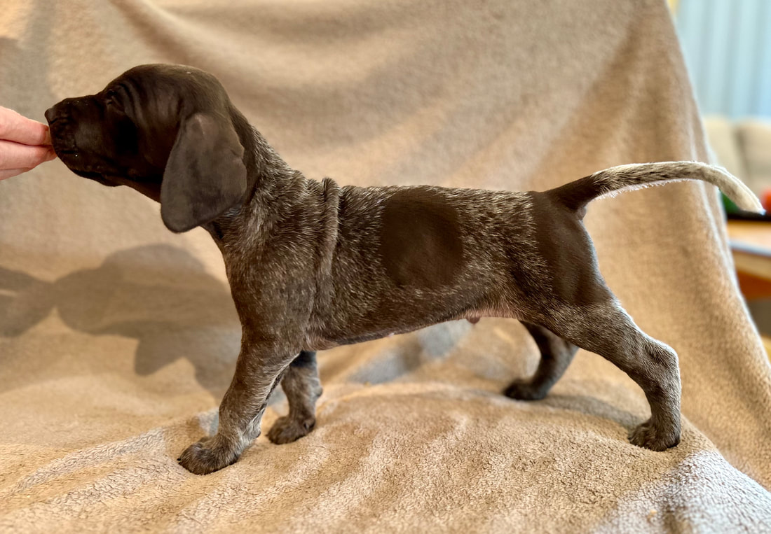 Da dette ble tatt var det kun en valp som var fordelt og det var nr H1. Han skal til Gävle og være parringsvalpen hos far og farfar og hete Herman. Ellers var det meste åpent. Vi vet at en av tispene skal hete Frøya, men hvem det er vil ikke bli klart før fordelingen er foretatt. Som "arbeidstitler" har to av de andre fått en slags navn av oss. Det står også ved billedteksene.